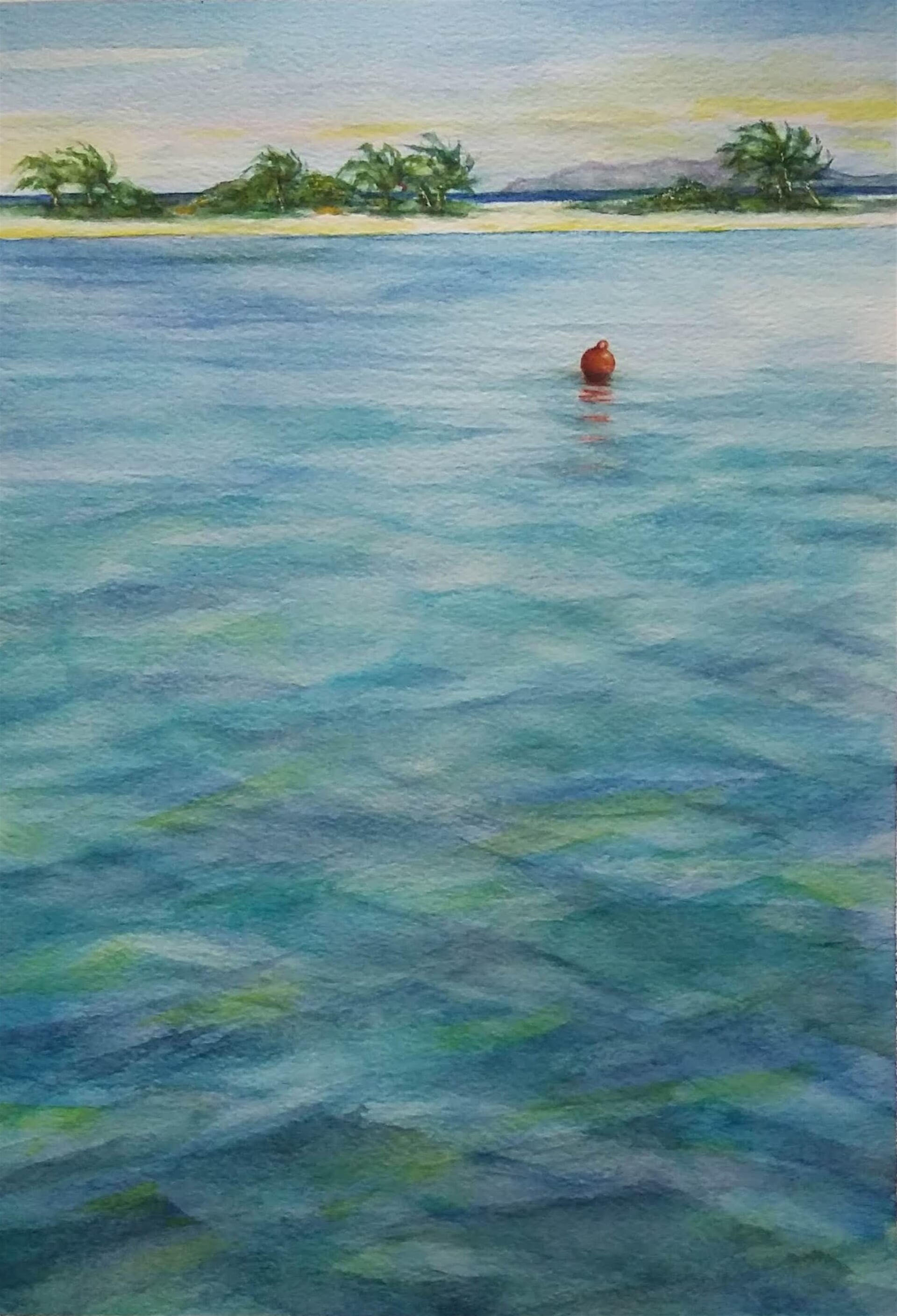 malba "Bójka u Sandy Island, Carriacou, Grenada", akvarel papír